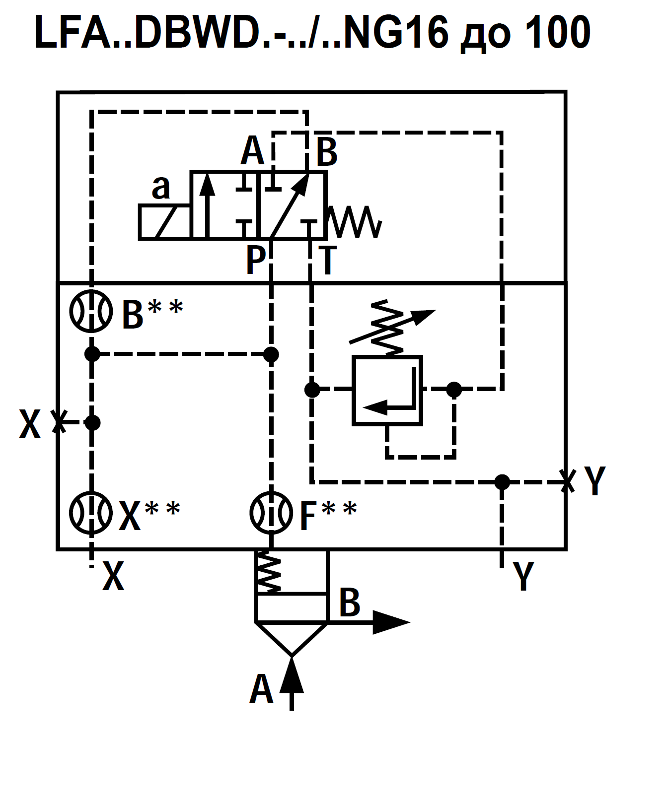 LFA50DBWD2-7X/315 - Крышка для логического клапана, типоразмер Ду50 функционал - DBWD2 = крышка с предохранительным клапаном с ручной настройкой с функцией запирания, под установку распределителя Ду6, два выхода X и Y, элемент регулировки - винт под шести